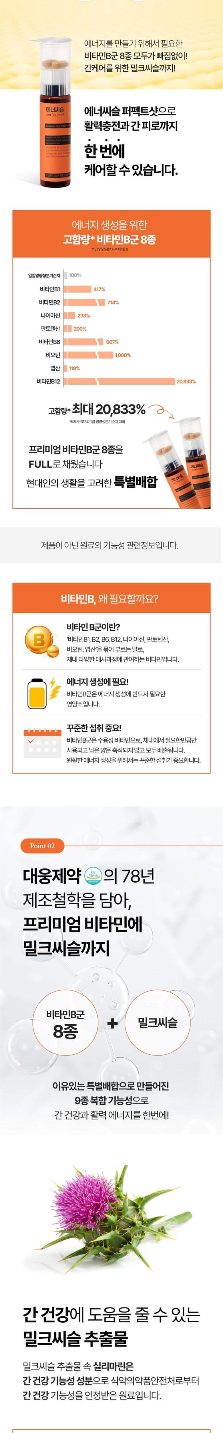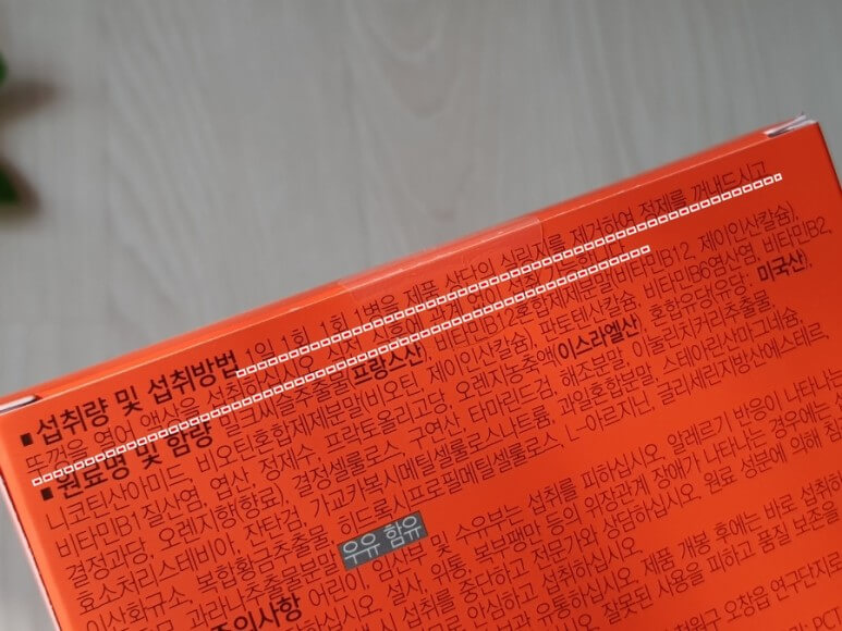 비타민 B군의 8종 성분 뿐만 아니라 다양한 영양성분을 고려한 이 제품은 다른 제품들보다 함량이 높습니다. 특히 비타민 B군의 함량이 20,833%까지 들어가 있다고 하니 활력을 얻기에 충분할 것 같습니다.